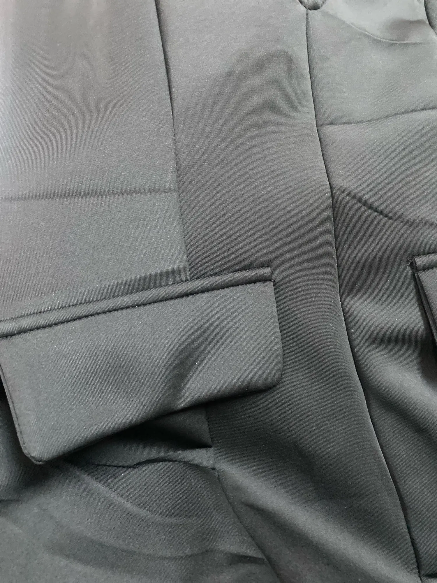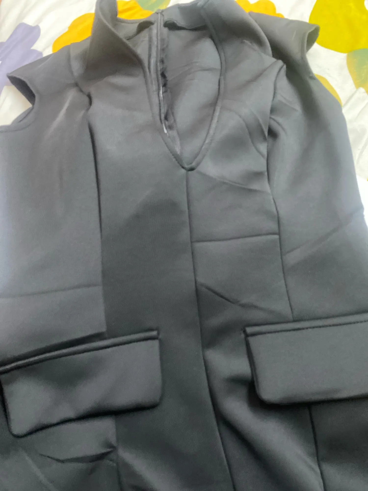 Crafted from luxurious Polyester, this pullover-style dress glides on with ease, offering both comfort and an irresistible allure. The subtle pocket flap details are a nod to sharp tailoring, adding an architectural sophistication that makes the dress versatile—perfect for a high-impact party look or an elevated, confident casual statement.