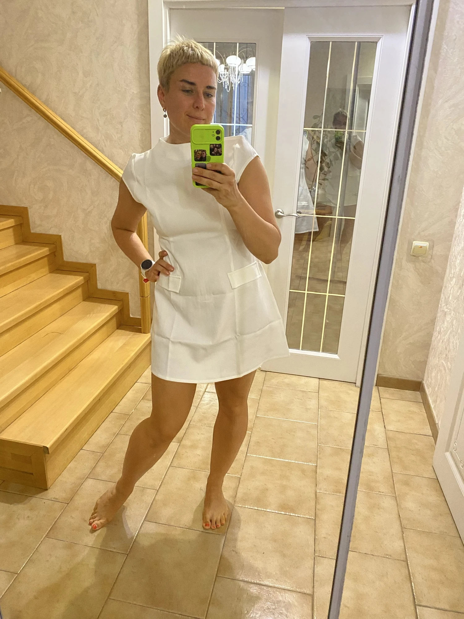 - Chic Functionality: The architectural flap pockets add visual interest and a subtle, confident utility to the classic mini-dress silhouette.